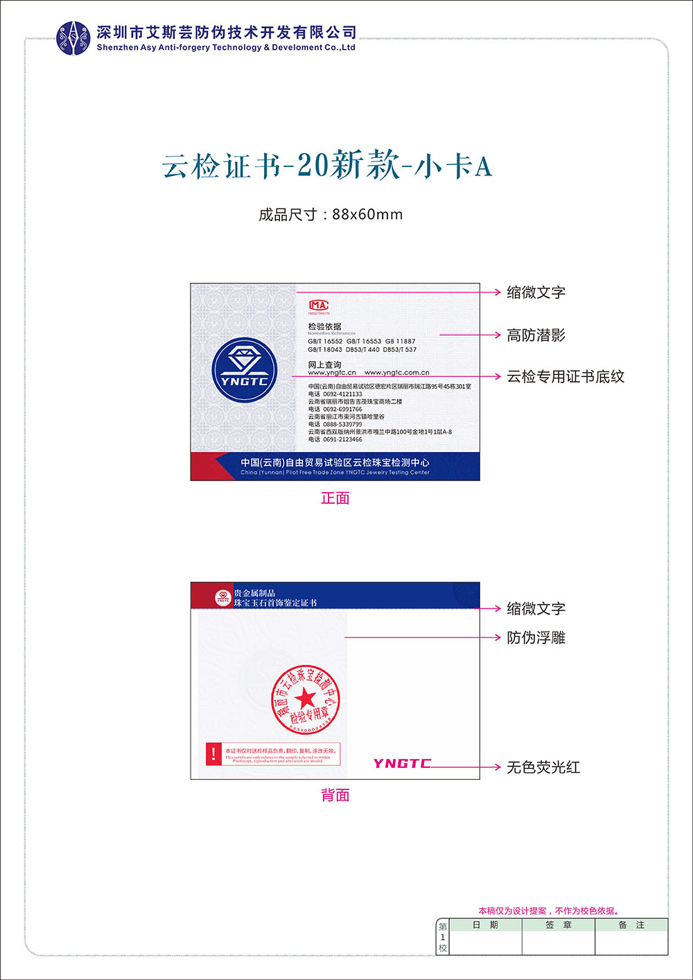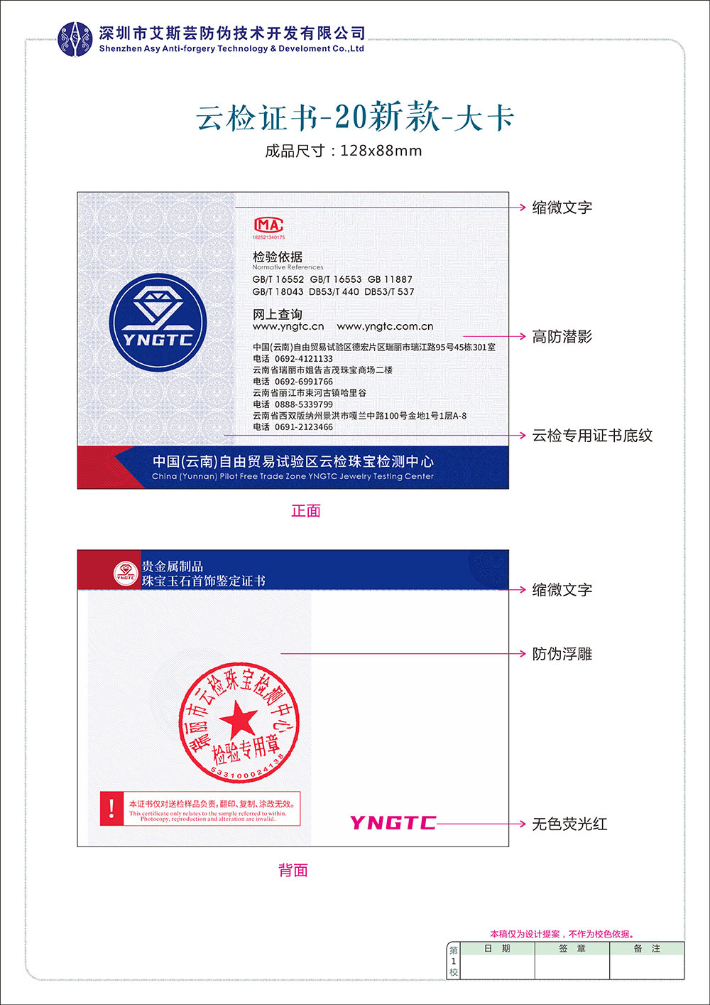 证书内容并不是固定的,可以选择不同的项目,只要项目中包含有能够满足保证样品唯一性的项目,如编号、外观描述、照片和质量,以及证明性的项目,如放大检查、红外光谱等即可。
